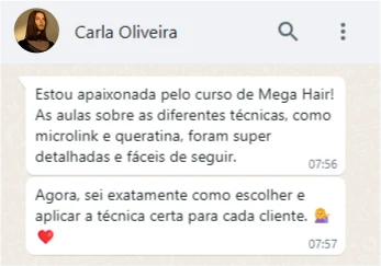 Além das aulas teóricas, o curso oferece dicas práticas e suporte contínuo, garantindo que você se sinta seguro e confiante em cada etapa da sua jornada profissional. Prepare-se para transformar sua paixão pelo Mega Hair em uma experiência gratificante e bem-sucedida.